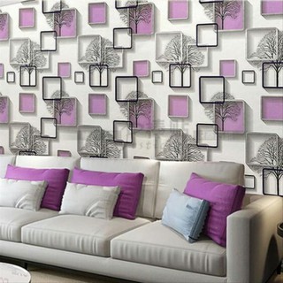 Wallpaper Dinding Kamar Tidur Motif 3D Pohon Kotak Pink ...