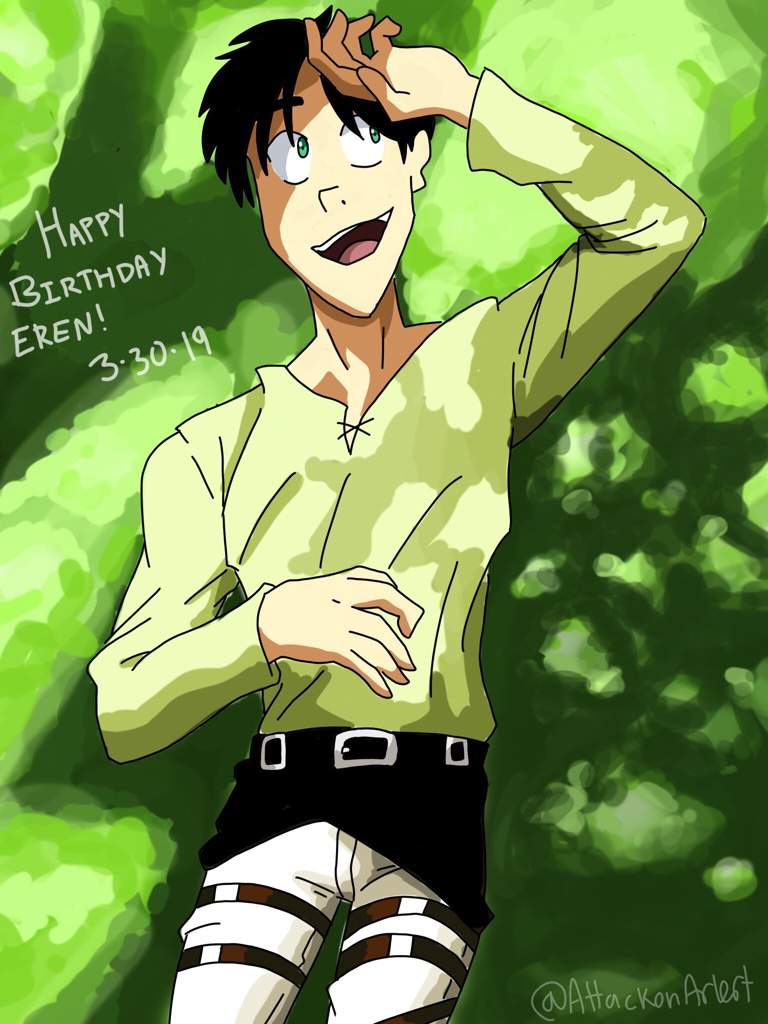 Eren Happy Birthday. Eren Yeager; the man the myth the legend, who looks like his father, his mother, Mr. Kruger, Freckles Ymir, Gabi and Frieda.
